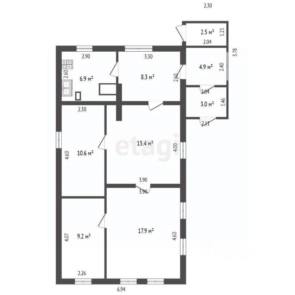 68,3 м²