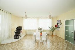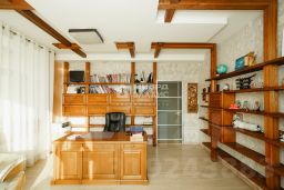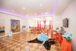 Большой холл с двойным светом, два рабочих кабинета, комната для гостей, несколько мастер-спален на втором этаже. Спортзал, бассейн, сауна и хамам, зимний сад с выходом на веранду. Также зона барбекю, на которую можно попасть сразу из дома. На каждом этаже по две гардеробные комнаты. Есть отдельная большая игровая комната для детей.