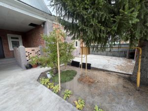На участке располагаются клумбы с красивыми и разнообразными цветами, создающие атмосферу уюта. Здесь растут яблони и груши, также имеется глубокий колодец и пруд для рыб. Кроме того, присутствует кирпичное строение для хранения садового инвентаря (газонокосилка, тачка, грабли и т.д.).