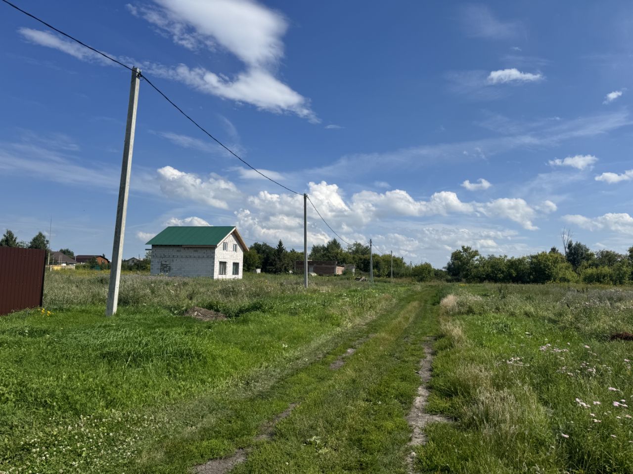 участок прямоугольной ровной формы, на улице идет застройка новых домов, в поселке есть газ, вода центральная.