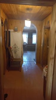 Дом: насыпной дом на кирпичном ленточном фундаменте, каркас обложен полнотелым кирпичом, окна ПВХ, крыша металл-нержавейка, 2 этажа, внутри дом сделан в стиле деревенского быта вагонка сосна. На 1ом этаже крытая веранда, кухня, комната, зал, комната отопления (газовый котел, запасной котел для твердотопливного запаса), санузел (нужно доделать), в зале действующий камин. На втором этаже комната и малая веранда. Отдельная комната с русской печью, главное что печь рабочая, в наличии весь инвентарь: ухваты, котелки, место для сна на печи (дубленка овчинная в подарок).