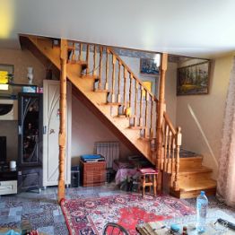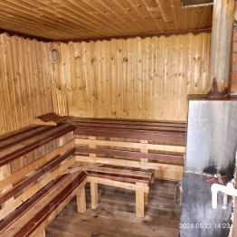 На втором этаже спальня, душевая и туалет совмещены, проходная комнатка, там стоит диванчик, система камер видеонаблюдения с монитор и выход на террасу с неё есть лестница в них в огород к теплице. Под террасой есть большая летняя комната хоз. назначения, рядом кладовая. Так же имеется беседка с качелей и большим столом и лавками. Большая баня и Большой предбанник с большим столом, а так же купель. За баней находится сарайчик. Есть гараж с погребом для хранения заготовок на зиму. Во дворе на против веранды котельная, где находится печка и газовый котёл. В огороде есть кустарники с машиной, смородиной Красной и чёрной, вишня, яблони.