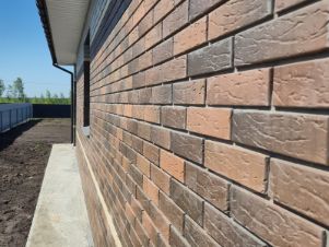 -материал стен: основные стены выполнены из газоблока 300 мм марка сибита, утепление стен, базальтовая плита 50 мм. Облицовочный кирпич ликолор Королевский двор.