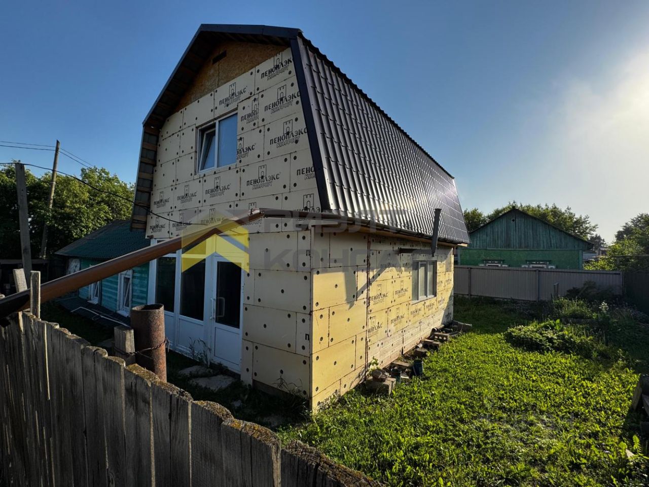 Предлагаем приобрести 1/2 дома на участке площадью 4.07 соток. Расположение дома угловое. Можно организовать 2 входа. Материал стен - насыпной. В этом доме имеются 2 комнаты (8 и 24 кв.м), кухня-прихожая (9 кв м) и санузел (6 кв.м). В дом заведена центральная канализация. Вода из скважины. Электроотопление. Имеется 2 подпола. Оба сухие, проблем с подтоплением не было никогда. Пластиковые окна. В дом заведен центральный водопровод и центральная канализация. Газ по границе участка. Имеется подпол глубиной 2 м. В самом доме осталось завести электричество, установить двери, лестницу (имеется в разобранном виде), натянуть потолки, сделать косметический ремонт. Трубы отопления и электрокотел смонтированы. Выполнен монтаж электропроводки.