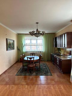 Второй этаж: потолки 2,9м, выложен из вармита 30, утеплитель 5, обложен нефтезаводским кирпичом, перекрытие из бруса 200х200. На этом этаже расположены кухня с обеденной зоной, зал и коридор, в коридоре установлен шкаф купе, также лестница на 3 и 1 этажи.