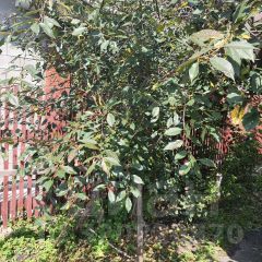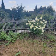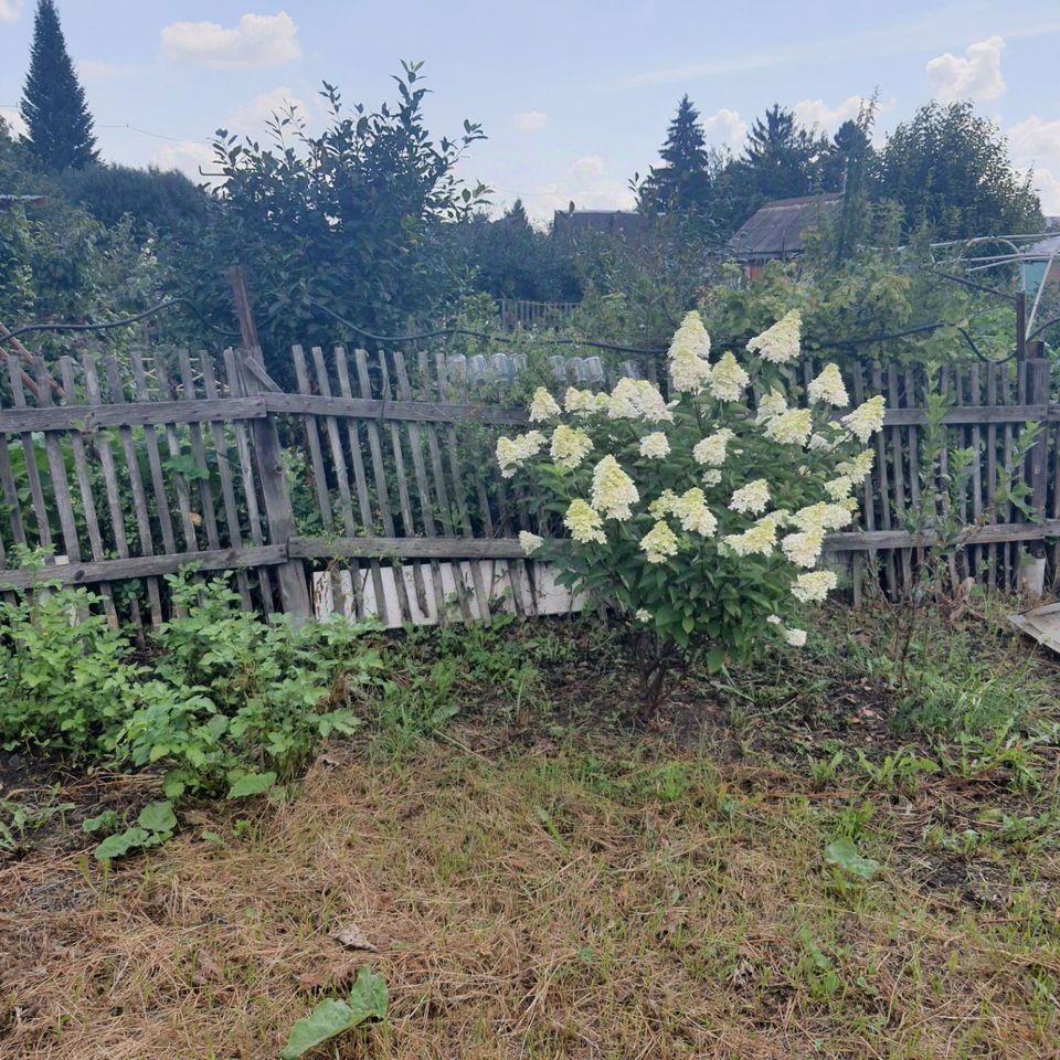 На участке растут вишни, яблоня, черемуха, гортензия, Крыжовник, красная и чёрная смородина, ели.