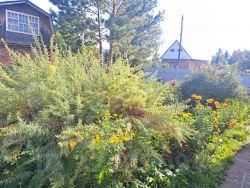 Посажены кустарники малина, смородина, крыжовник, вишня, яблони.