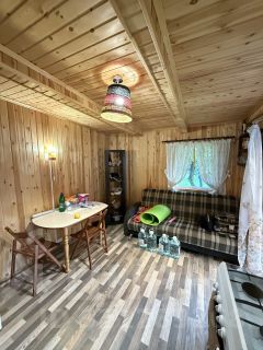 Дом 59.5 кв.м. имеет удобную планировку - 3 комнаты на первом этаже и просторную спальню на втором. Дом теплый, возможно проживание зимой.