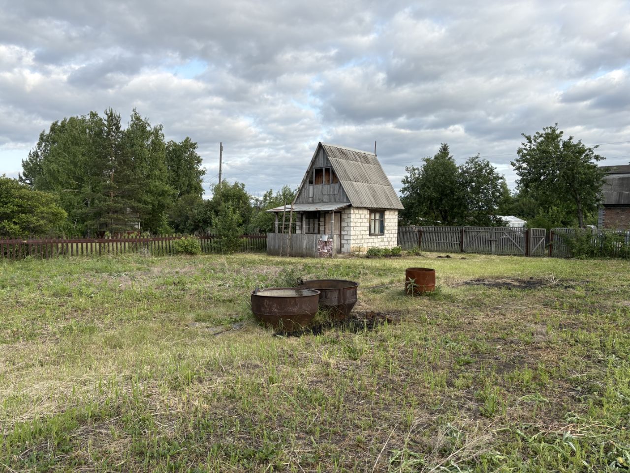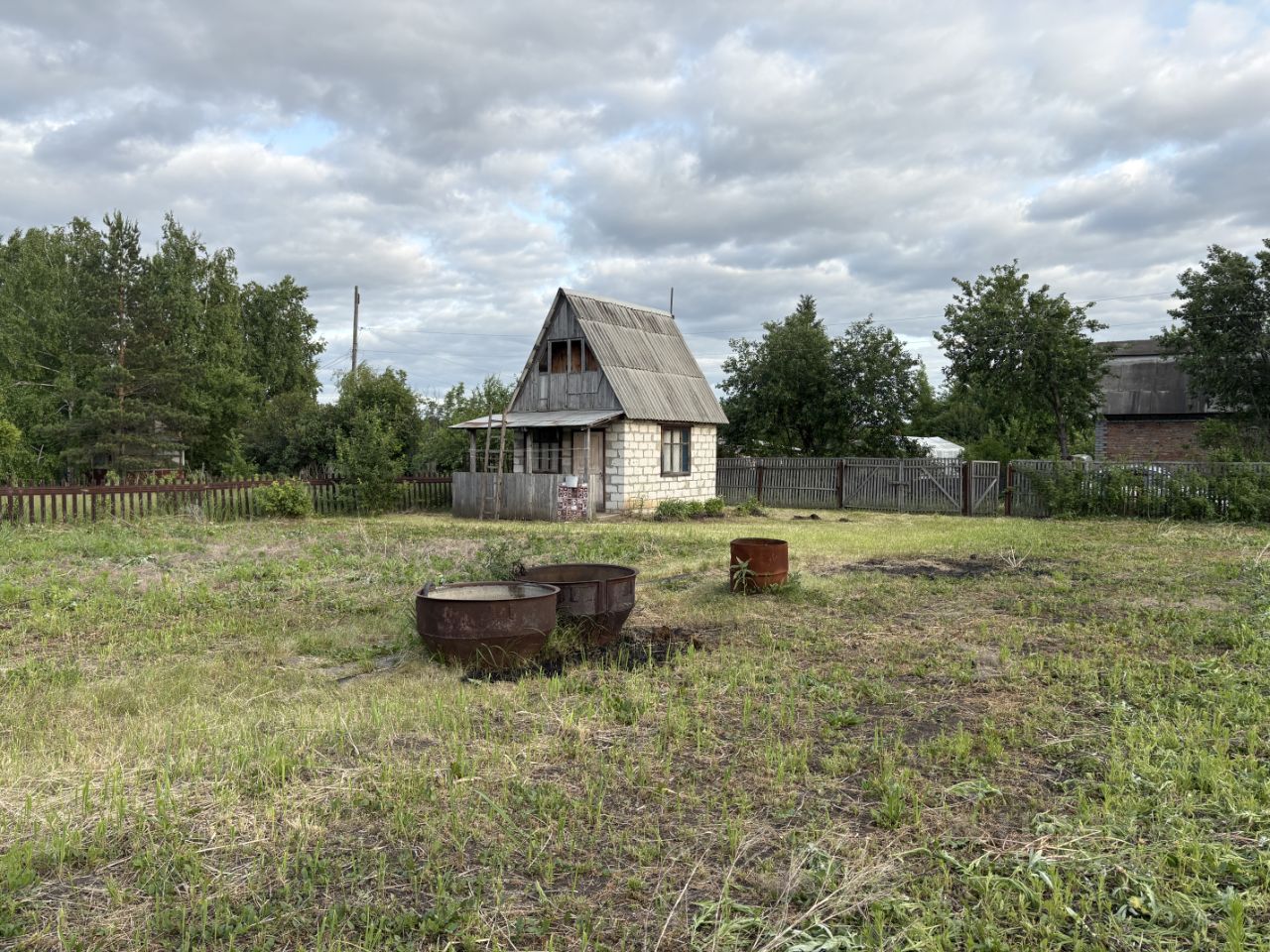 участок огорожен со всех сторон на участке хоз блок и туалет