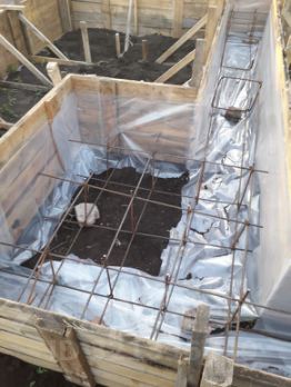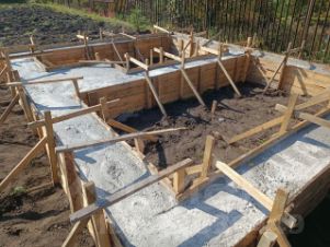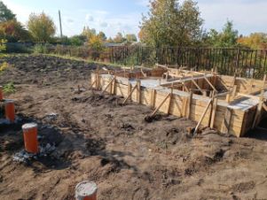 на участке залит фундамент под баню 5 на 4 и террасу 3 на 5