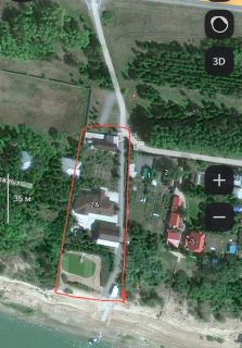 Береговая часть выкуплена до водоохранной зоны (на фото земля в собственности обведена красным).