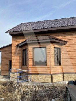 Внешняя отделка выполнена под натуральное дерево, создавая ощущение тепла и уюта.