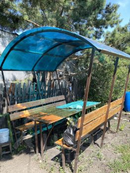 Участок ухоженный , установлена беседка, новый водопровод, бочки, инструментарий для работы на огороде, диван, проведен свет, розетка,уличный туалет.