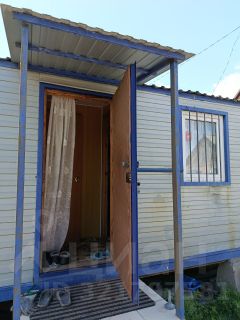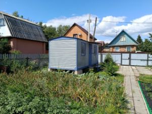 Ухоженный участок с установленным вагончиком-бытовкой.