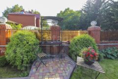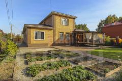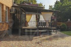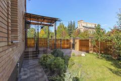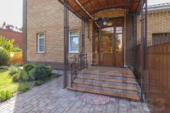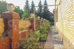 Территория вокруг дома выложена плиткой, участок имеет правильную форму и четко продуманный план озеленения. Теплица, мангальная зона, шикарный газон с голландской травой предназначен для спортивных игр и отдыха. Имеется отдельная площадка для установки разборного бассейна. Перед домом растут многолетние деревья, создавая атмосферу уюта и спокойствия. По периметру крыши установлена неоновая программируемая подсветка, которая выгодно выделяет дом в темное время суток и создает дополнительное освещение. Входная группа с крыльцом имеет индивидуальное решение с использованием металлических конструкций.