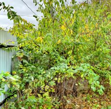 на участке растёт вишня , малина , яблоня , ирга.