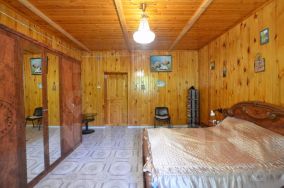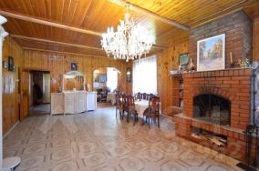 На первом этаже просторная гостиная с камином, две спальни, кухня с русской печью, сауна, два туалета, душевая, местами для хранения. На втором этаже 3 просторные спальни, туалет, просторный холл. Частично остается мебель.