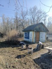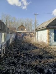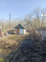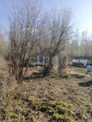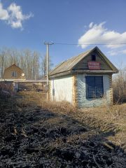 На земельном участке построен небольшой, кирпичный домик, примерно 20кв.м, не оформлен, частично есть мебель. Межевание в процессе.