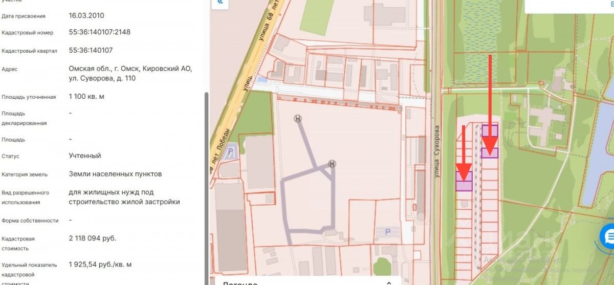 На продаже земельный участок 11 соток под ИЖС рядом с Парком Победы по ул Суворова. Участок в собственности, межевание проведено.( кад 55:36:140107:2102 и 55:36:140107:2103)