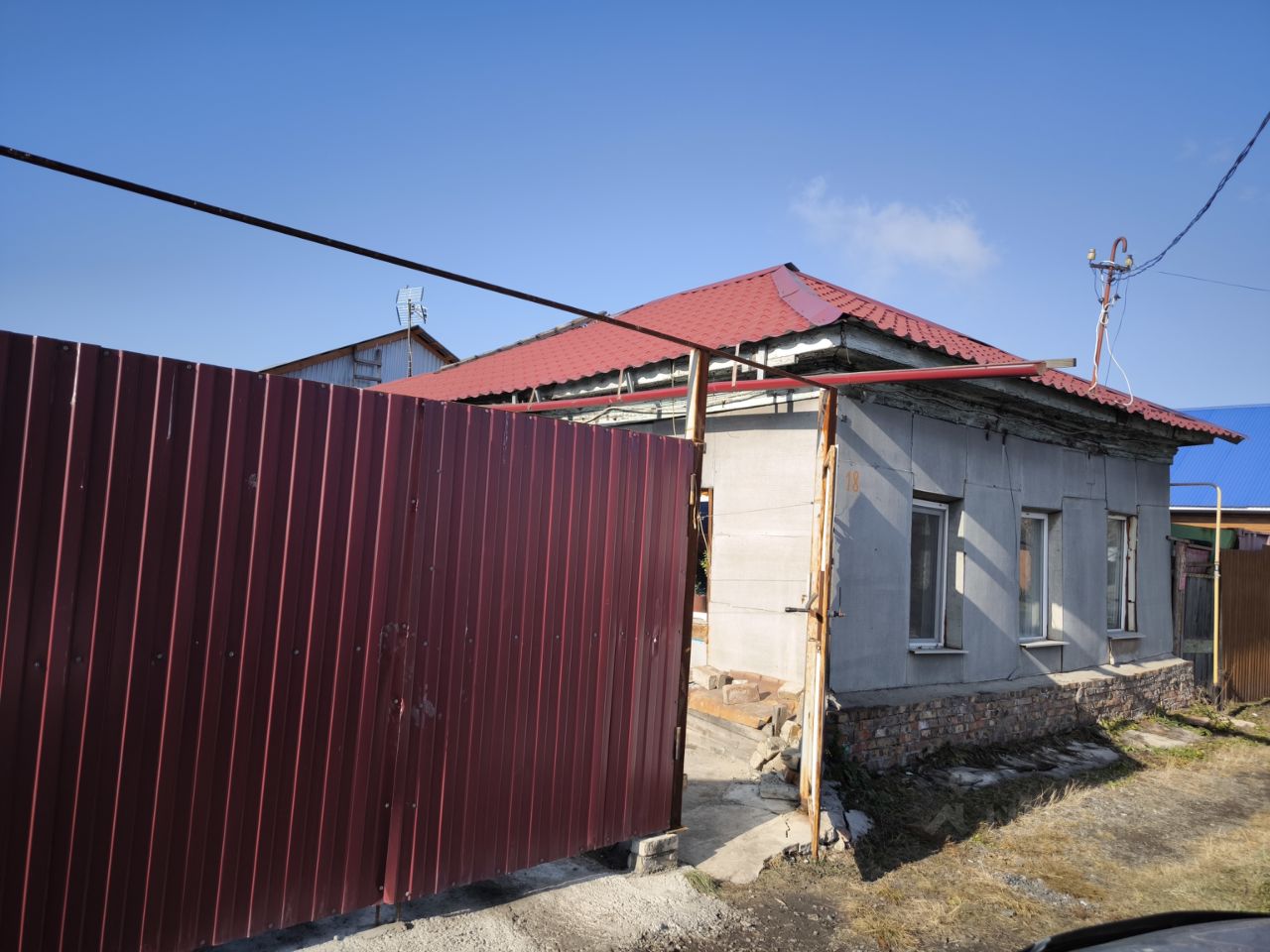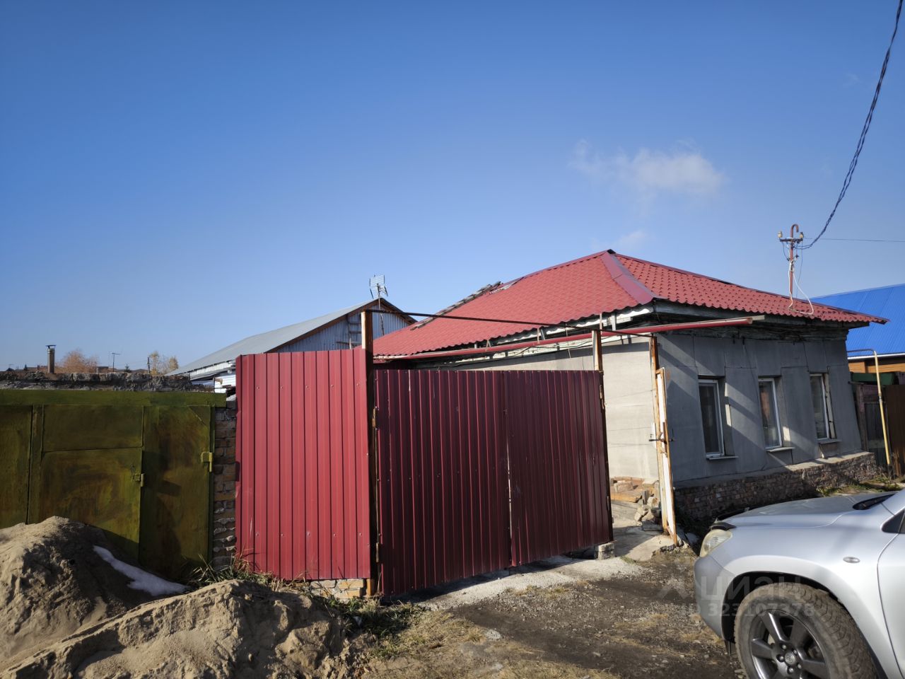 Большая ограда залита бетоном, можно ставить три машины.