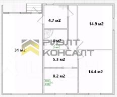 В доме: две изолированные комнаты 14.9кв.м, 14.4кв.м,