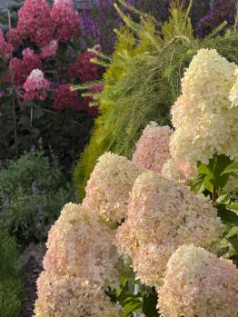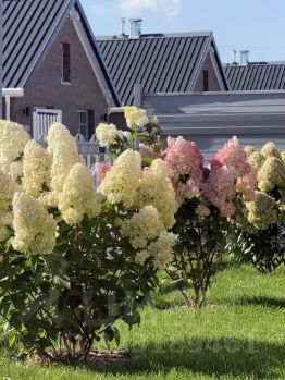— Ландшафтный дизайн: ухоженный газон, голубая ель, туи, гортензии, можжевельник и десятки других растений