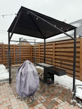 — Мангальная зона с подсветкой и раздвижным мангалом с дровником