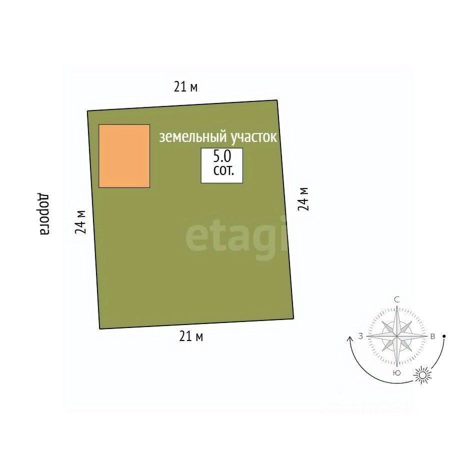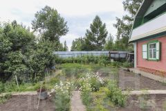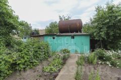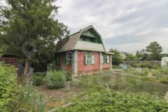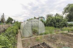 На участке расположен домик площадью 54 кв.м — двухэтажный комфортный, с хорошей планировкой. Внутри есть всё необходимое для комфортного проживания. Вид с балкона как раз на ваш будущий сад.