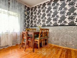 Дом теплый, стены из кирпича и шлакоблоков. Полностью благоустроен, проведены основные коммуникации: центральное водоснабжение, централизованная газификация, канализация - септик, доступны интернет и телевидение. Выполнен косметический ремонт. Все комнаты изолированы, в распоряжении просторная кухня, спальня и детская комната. Дополнительно, с незавершенной отделкой, есть второй этаж (при вашем желании здесь могут появиться еще две комнаты).
