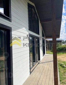 Дом каркасный. Коробка 7,5*13,8. Построен на свайном фундаменте, благодаря чему устойчив к пучению грунта. Утеплитель мин.вата 200 мм по кругу. Перекрытия из бруса. Террасная доска - сосна. Внутри сделана предчистовая отделка: перегородки, разводка электричества, теплый пол. Заведены все необходимые коммуникации: водопровод, септик, электричество. В конструкции продумано все до мелочей!