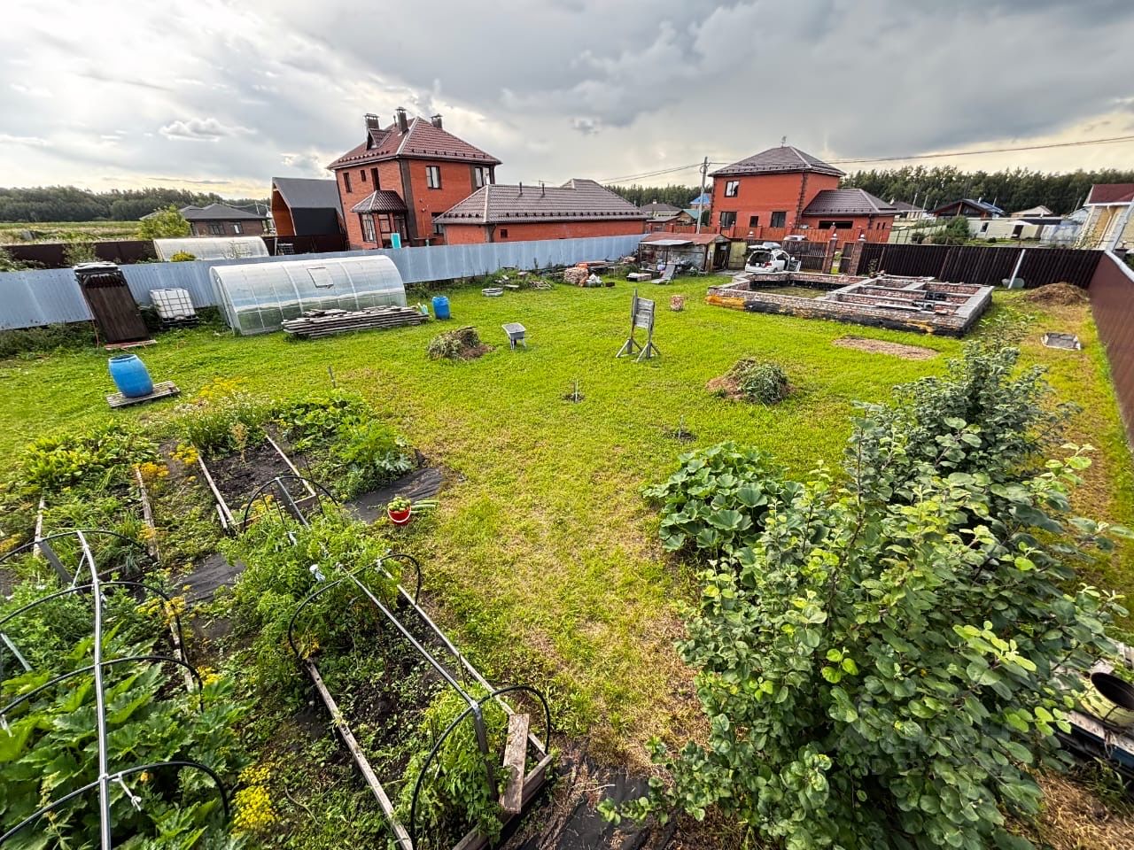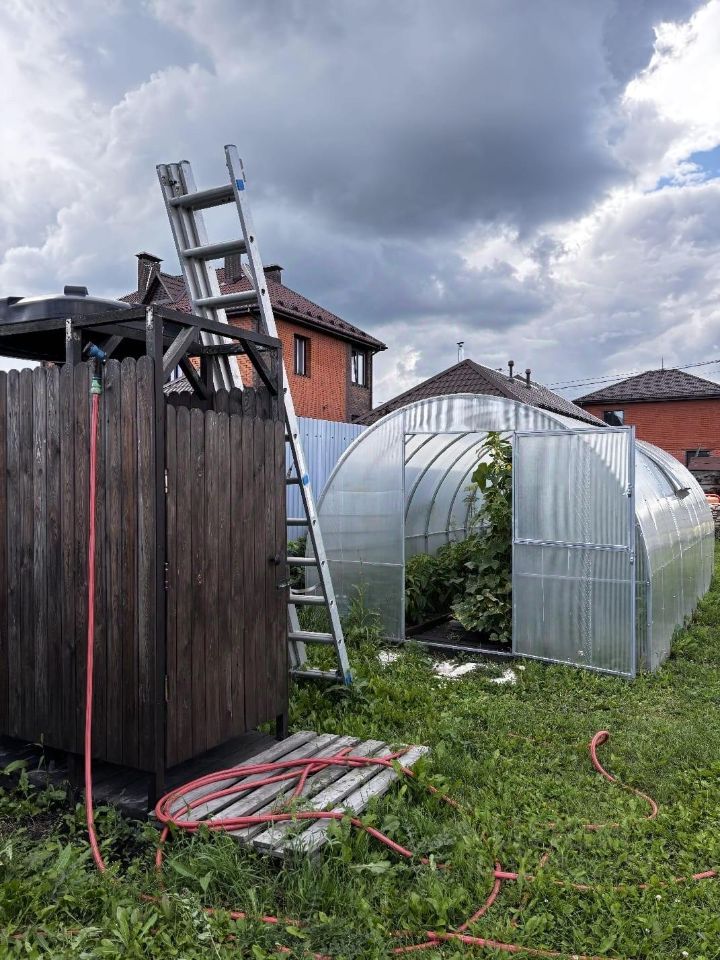 На участке забор: лицевая сторона дерево, боковое и задняя - профнастил, ворота откатные, отделанные лиственницей. Фундамент+ цоколь (кирпич), размер: 10*8,5 м, имеется септик переливной 2 по 3 метровых кольца. На участке установлен железный гараж, 6 метровый колец с погружным насосом для полива, теплица, размер 6*3 м, с возможностью подключения автополива от бочки 1 еврокуб. Летний душ с нагревательным баком, туалет. Имеются посадки: малина, черная смородина, крыжовник, жимолость, вишня, яблони, клубника. Электричество заведено на участок. Поселок оснащен коммуникациями: газ, центральное водоснабжение, высокоскоростной интернет. Дороги выложены бетонными плитами, улицы освещены. Документы готовы.