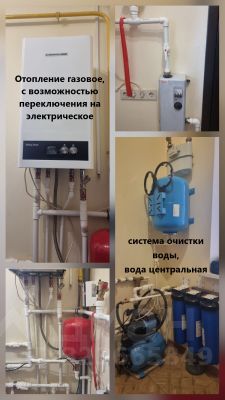 Отопление газовое, с возможностью переключения на электрическое. В каждой комнате, в том числе гараже, можно регулировать подачу тепла. Центральное водоснабжение, два септика - на дом (6 куб.) и на баню (6 куб.). Спутниковое телевидение (Триколор), интернет.