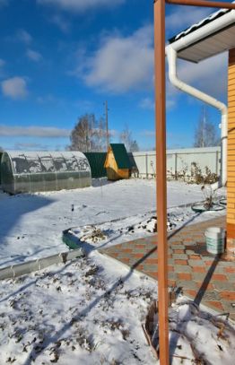 На участке (11,25 соток) размещены: дом с гаражом и верандой; отдельно стоящая баня с верандой; две теплицы; уличный туалет; под навесом дровник - кладовая с организованными полками для хранения хозяйственного инвентаря. Двор и дорожки на участке выложены тротуарной плиткой, организованна лужайка для активных игр.
