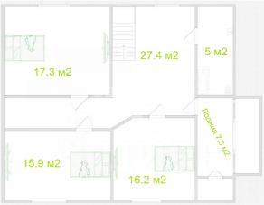 Второй этаж: три комнаты — достаточно места для всех членов семьи,.