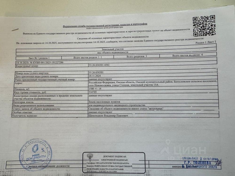 Предлагаем к продаже земельный участок,в границах Богословского сельского поселения, с Новомосковка,площадью 15 соток, под ИЖС межевание имеется, газ , вода, электричество ,по границе участка.кадастровый номер55:20:030301:4361
