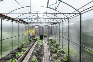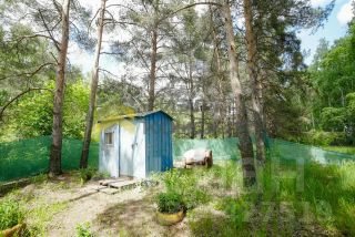 Участки смежные, огорожены забором из профнастила. Один из домов жилой, площадь его 60 м2, возведен из газоблоков, на бетонном ленточном фундаменте, состоит из большой кухни, 25 м2 и примерно такой же комнаты, просторной крытой террасы, помещения, предназначенного для установки душа и санузла, мастерской. В доме центральный водопровод, выгребная яма, электроотопление, действующая русская печь. Горячая вода через бойлер. К участку подведён газ. В доме высокие потолки, около 4м, пластиковые окна, на кухне французское окно. Расположен на участке в части, ближней к лесу.