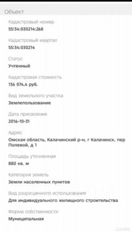 Площадь: 880 м² (8.8 соток).