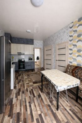 Внутри аккуратное жилое состояние: натяжные потолки, ровные стены, хорошее напольное покрытие, кухня с гарнитуром, уютные комнаты.