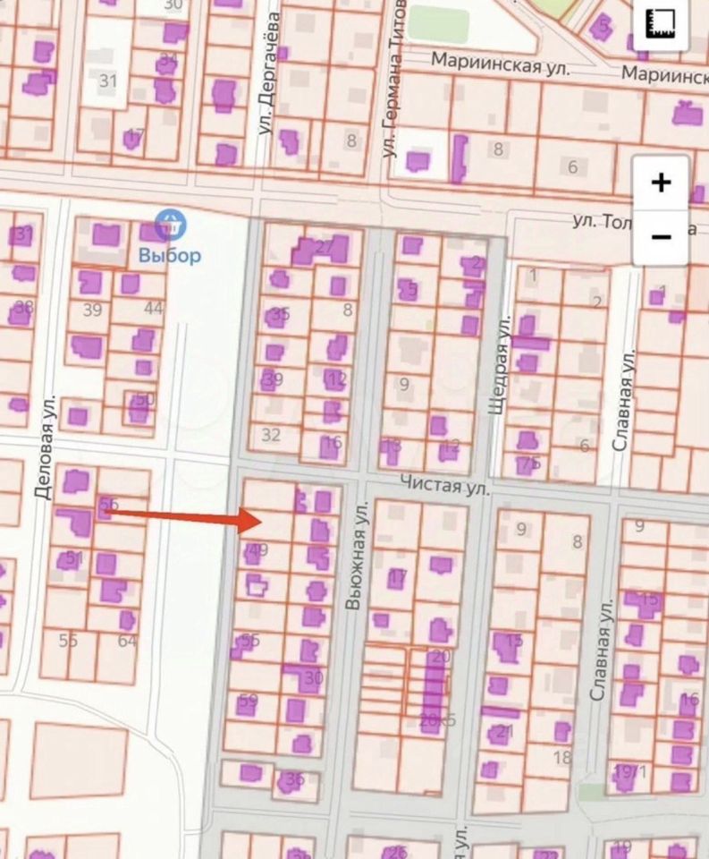 Площадь участка — 9,2 сотки. Участок не угловой, соседи с трёх сторон, застройка обжитая.