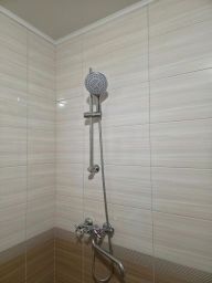 +отдельно стоящая кирпичная баня, в ней своя система очистки воды, установлена система теплого пола, комната для парной отделана липой, есть помывочная с душем, комната для чаепития и санузел.