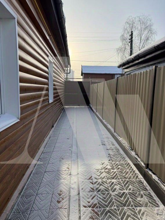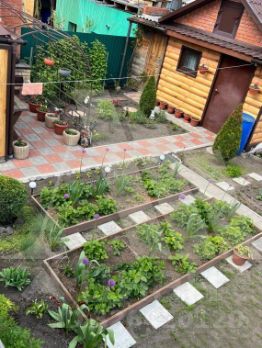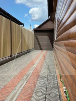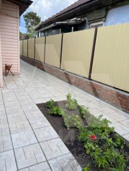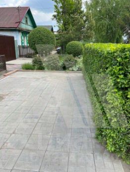 Участок 4,3 сотки (ИЖС) в ухоженном состоянии, огорожен забором, металлические ворота, гараж, баня, хозяйственные постройки для инвентаря. Ограда вымощена тротуарной плиткой.