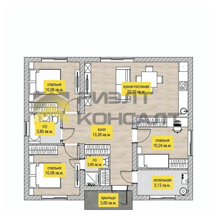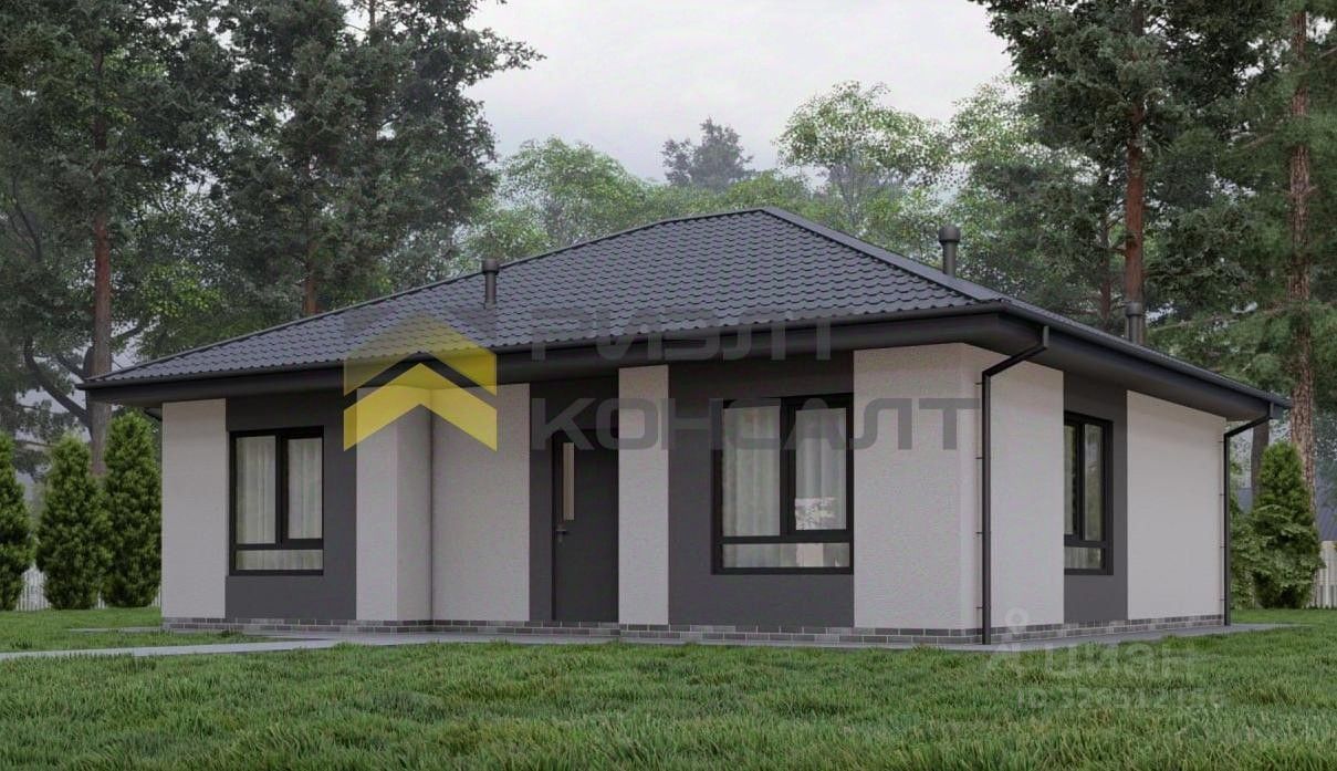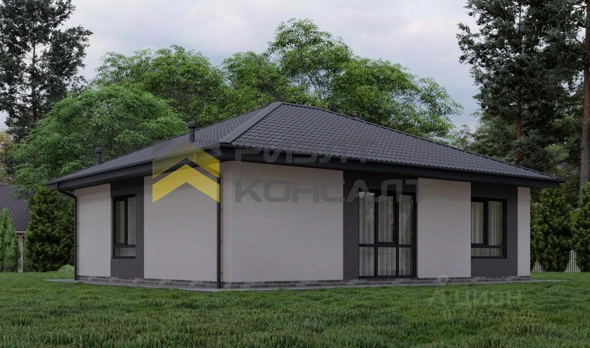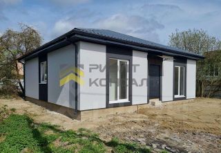 Дом на ленточном фундаменте, из газобетонных блоков 300 с оштукатуренным фасадом. В предчистовую отделку входят: