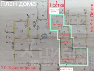 Полностью изолированная часть дома с отдельным земельным участком, где соседей в буквальном смысле не слышно и не видно, — по сути, отдельная двухкомнатная квартира, да ещё и с земельным участком (смотрите фото: "План дома" и "План земельного участка"). Площадь моей 1/4 части дома составляет 34,6/17,3/5,7 м², две смежные комнаты, кухня, утеплённая веранда, веранда. Высота потолков 2,67 м., печное отопление, вода с колонки. При желании можно подключить центральный водопровод и центральную канализацию, например, у соседа за стеной есть туалет и душ. Свой крытый оцинкованным профнастилом земельный участок площадью 1 сотка (в своё время крыли и утепляли под мастерскую). Если нужен огород для посадок, надо будет разобрать крышу участка на дрова.