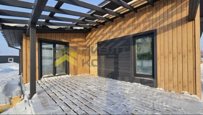 Дом 82 кв.м. выполнен по скандинавской технологии на свайном фундаменте. Утепление 200 мм стены, 250 кровля. Выполнена вся внешняя отделка дома: металлический сайдинг, водостоки, мягкая черепица Docke. Заведено электричество, канализация, вода. Внутри предчистовая отделка: перегородки, разводка электричества, стяжка пола, электрокотел. Есть возможность сделать ремонт под ключ.