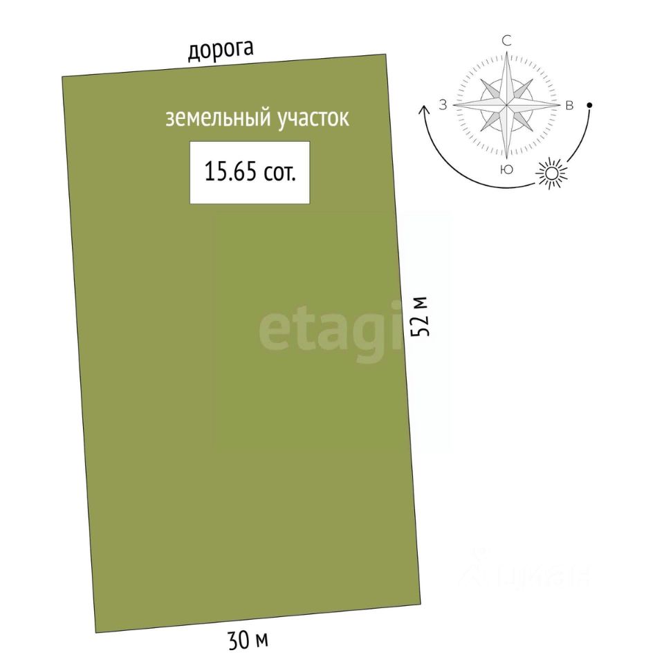 Участок в 15 соток предоставляет значительное пространство для сада, огорода или зоны отдыха.