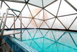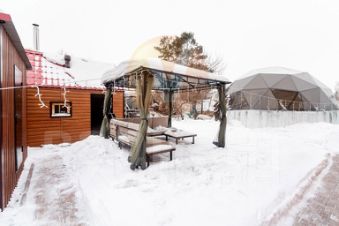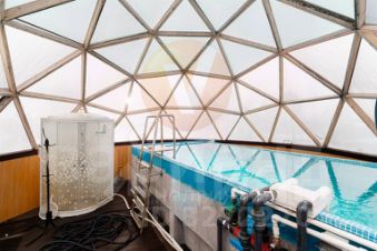 На территории расположены: отдельностоящие кирпичная баня и крытый работающий круглый год бассейн.