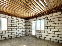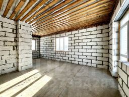 Стены дома из газоблока Сибит толщиной 300мм, облицовка из кирпича 120мм. Кирпич желтый - омский Азово, кирпич коричневый Тюмень "Смог". Техподполье в доме высотой 1,2 м для проведения коммуникаций, возможно обустройство погреба. Кровля - гибкая черепица Шинглас двухслойная. Утепление кровли - 200мм. Выполнена вентиляция. Водосточная система Дёке. Окна ПВХ, 5 камерный профиль. 2 камерный стеклопакет, двери - теплый алюминий. Дом очень теплый и энергоэффективный - экономия на ЖКУ.
