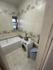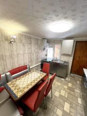 Дом состоит из трех комнат, теплого санузла и просторного отдельного тамбура из которого оборудован вход в дом, отдельный вход в кухню и выход на придомовую территорию. В доме сделан косметический ремонт, установлены окна ПВХ,приборы учета на коммунальные услуги, новые межкомнатные двери и входная металлическая дверь современного образца. На окнах установлены решетки и рольставни. Санузел совмещён, стены и пол облицованы кафелем современного образца, установлена новая сантехника. На кухне также стены полностью облицованы кафелем.