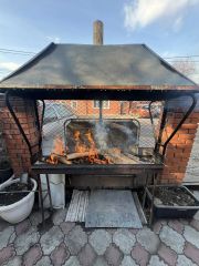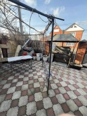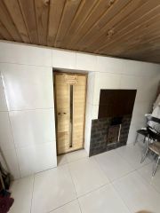 Предомовая территория частично забетонирована, частично выложена тротуарной плиткой. На придомовой территории имеется капитальный кирпичный гараж на ленточном фундаменте, вместимостью на 2 авто. Гараж забетонирован, обеспечен электроснабжением, центральным водоснабжением и центральной канализацией. Оборудована смотровая яма, обложенная кирпичом. Так же в гараже и в доме имеются погреба, тоже обложенные кирпичом. Помимо, гаража на территории располагается кирпичная баня на ленточном фундаменте и хоз блок. Баня обеспечена центральными коммуникациями: электроэнергия, водоотведение, канализация. Установлены окна ПВХ. Банное помещение состоит из парилки, душевой и комнаты отдыха. Парилка облицована вагонкой из липы, в душевой и комнате отдыха- керамогранит. На придомовой территории, выложенной тротуарной плиткой, оборудована мангальная зона и беседка.