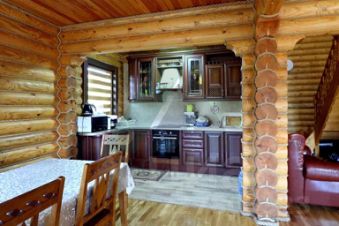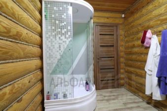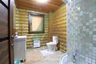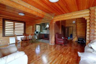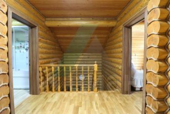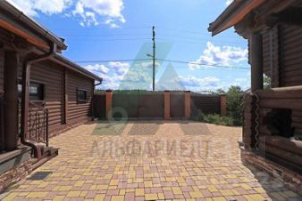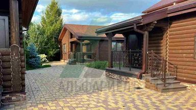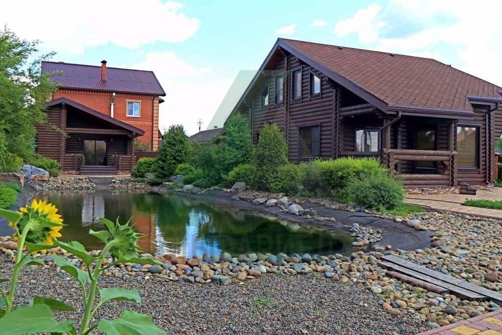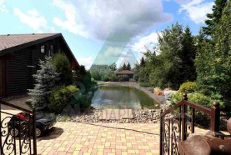 Ландшафт и благоустройство территории выполнены строго по проектной документации и включают в себя искусственный пруд 7*17 м глубиной 3 м, теплицу, продуманную систему полива. Посажены многолетние деревья (крупномеры - кедр, сосна, лиственница), плодовые деревья. Лицевая часть участка огорожена забором также из оцилиндрованного бревна. Территория перед домом и гаражом заасфальтирована.